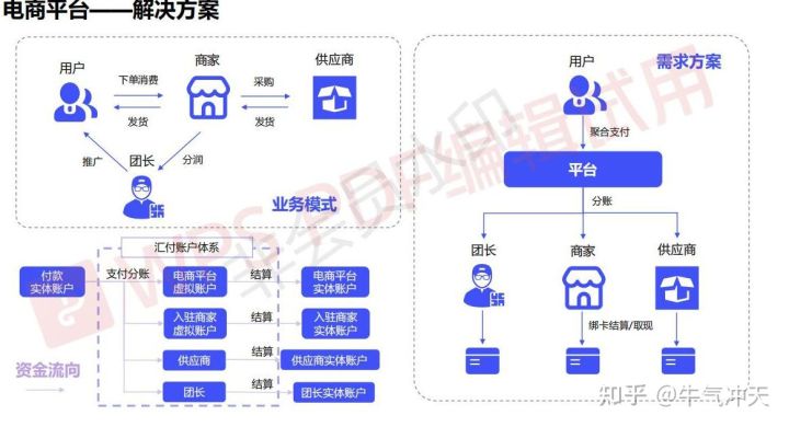电商支付解决方案:1、分账系统,解决二清和多级分润问题。2、聚合支付:线上线下一体化合并支付场景问题。3、财务系统+风控系统系统对账和售后问题。